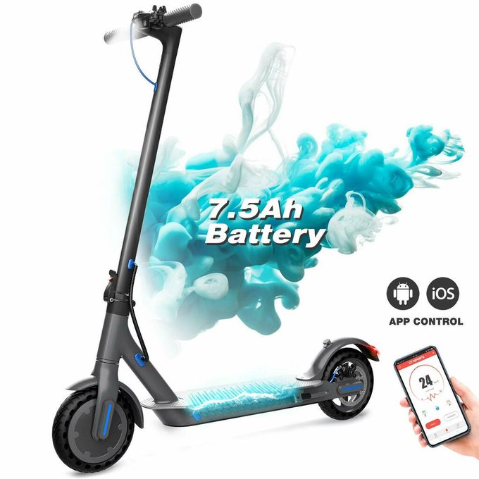 🛒Patinete Eléctrico, Scooter Eléctrico Plegable, Scooter Urbano con Pantalla LCD / Batería de 7,5 A / APP / Bluetooth / Ultraligero para Adultos